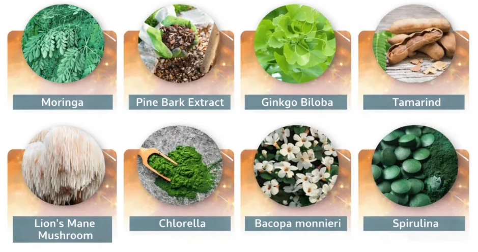 Ginkgo Biloba is one of the most widely studied herbal ingredients for brain health. It is believed to enhance cognitive function by improving blood circulation in the brain and supporting neurotransmitter activity. This may result in better memory retention, increased concentration, and improved mental processing speed.